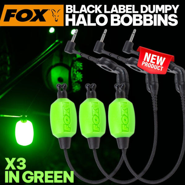 Fox Micron MX Alarm Set 3-Rod PLUS 3 Fox Black Label Dumpy Halo Bobbins – Green