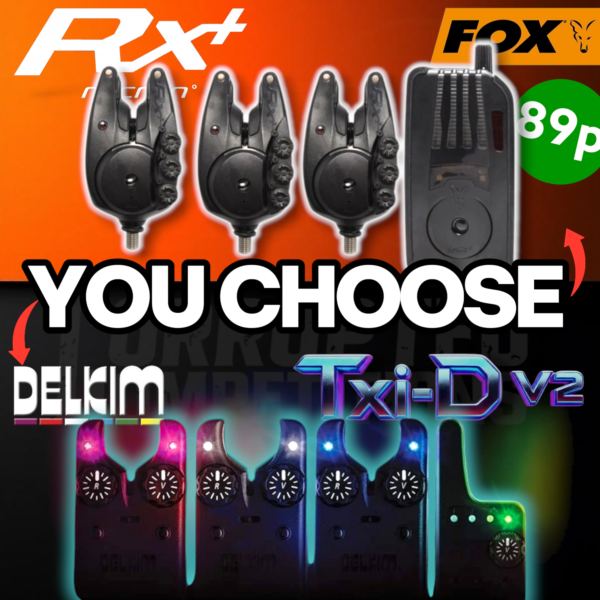 Fox RX+ Alarms with Receiver OR Delkim Txi-D V2s with receiver and snag ears!
