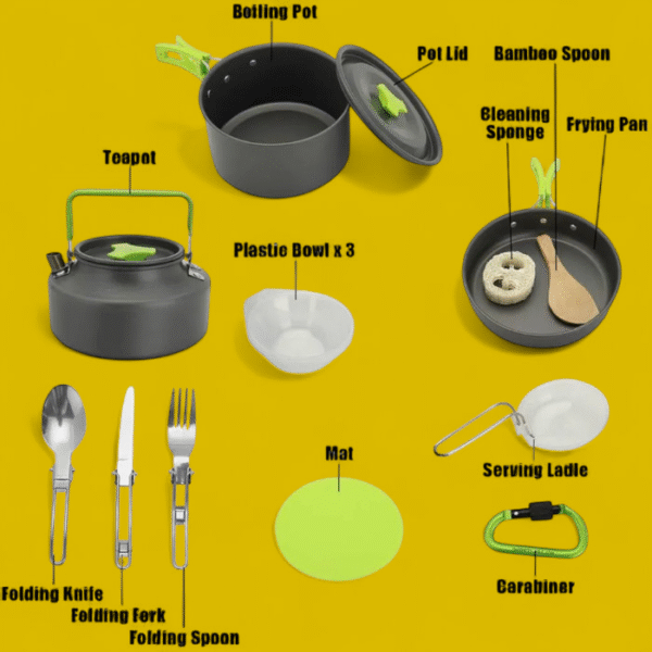 15 Piece Cookware Set, including an aluminium kettle, boiling pan, frying pan plus much more