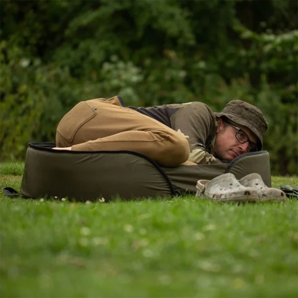 For transport, this Carp Cradle folds in two, and there is space to store a Carp Care Kit and Basix Weigh Sling inside so are your necessary fish care is in one place. The carry handles on this cradle can also be used to peg it down to the terrain, this is great once you’re in a swim to prevent any risk of it blowing away.