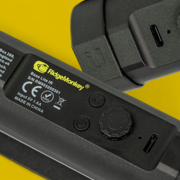 RidgeMonkey Base Lite IR, Bolder, brighter and better than ever before, the new Base Lite IR is packed full of fantastic features making it the ultimate budget-friendly, portable outdoor floodlight to keep you well-lit everywhere you go. With a familiar compact and lightweight design, this latest evolution features rotating magnetic end caps, allowing you to easily control the angle and direction of the lit area through a full 360-degrees. The unit can be magnetically connected to the included backing plate for pinning it to shelters and awnings, placed directly and securely on to any nearby ferrous metal or even mounted to a tripod or bracket via the universal threaded end caps, to provide customisable, ambient lighting to suit your needs. The Base Lite IR includes a whole new array of set colours and mixed spectrums, providing you a myriad of different options to suit any scenario. Far brighter than ever before, the smooth transition mode and flash functions are all easily accessible through the controls on the unit itself or the included wireless remote control, offering hands-free, adjustable lighting at the touch of a button.