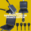 Granite Edition features fixed cool-touch handles, riveted hinges and a full utensil set that fits inside the toaster for easy storage. The square shape also means that there is less wasted storage space than with traditional circle shaped cookware. Despite the name, the Classic Sandwich Toaster is not just for toasties, think pies, slices, naans, wraps, omelettes, cinnamon swirls – the possibilities are endless. Our all-new granite-style coating makes our pans tougher, more durable, and offers improved non-stick properties taking compact cookware to a whole new level.